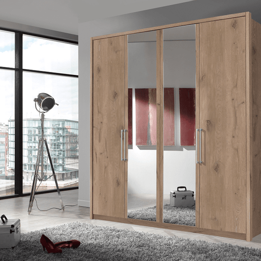 Berlin 4 Door Mirrored Hinged Wardrobe - Height 220 cm
