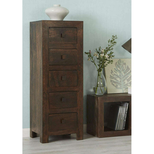 Dark Solid Mango Wood Tall 5 Drawer Chest