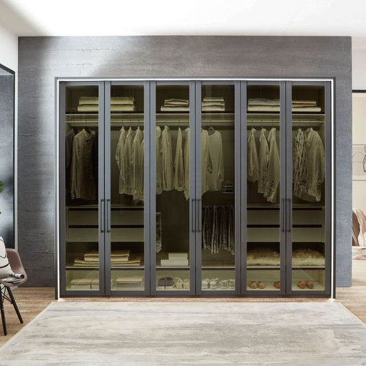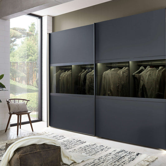 Mayfair VIP Graphite 4-8 Door Hinged Wardrobe Cornice/LED Lights - Height 240 cm